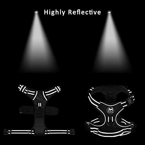 • NO PULL AND CHOKE FREE: Our front lead dog harness has two sturdy metal leash attachment points with reinforced webbing, front clip for discouraging pulling and back for relaxed walks. The pet harness is soft breathable non-toxic mesh padded, pulling pressure is evenly distributed to the body to prevent Choking. This easy dog harness is perfect for daily walking, running, hiking, training, hunting, outdoor adventure and more!