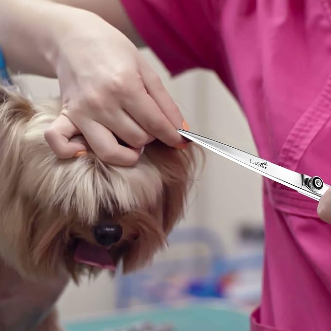 Laazar Professional 7.5 inch Straight Shears for Dogs and Cats Leather case Included | Adjustable Pet Grooming Scissors | Hand-Forged 440C Japanese Stainless Steel | Groomers Tool for Men and Woman