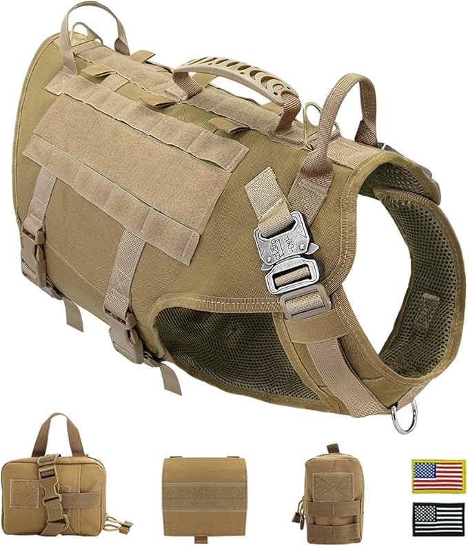 PET ARTIST Tactical Dog Harness for Hiking Training, No Pull Vest Harness for Medium Large Dogs, with Pouches and Patches Coyote Brown, L