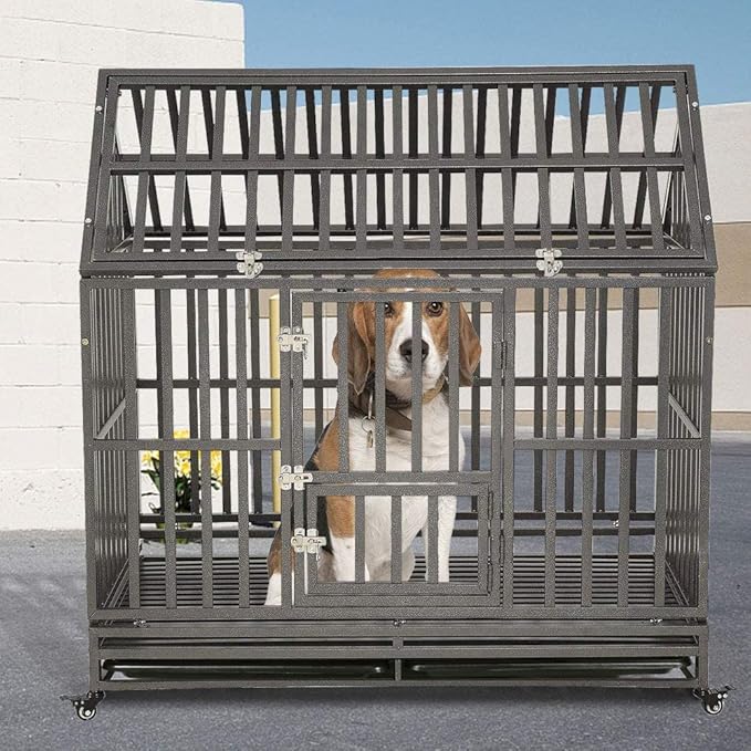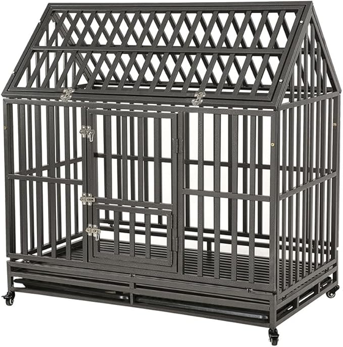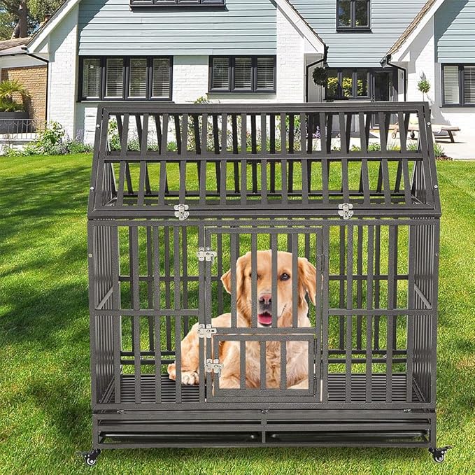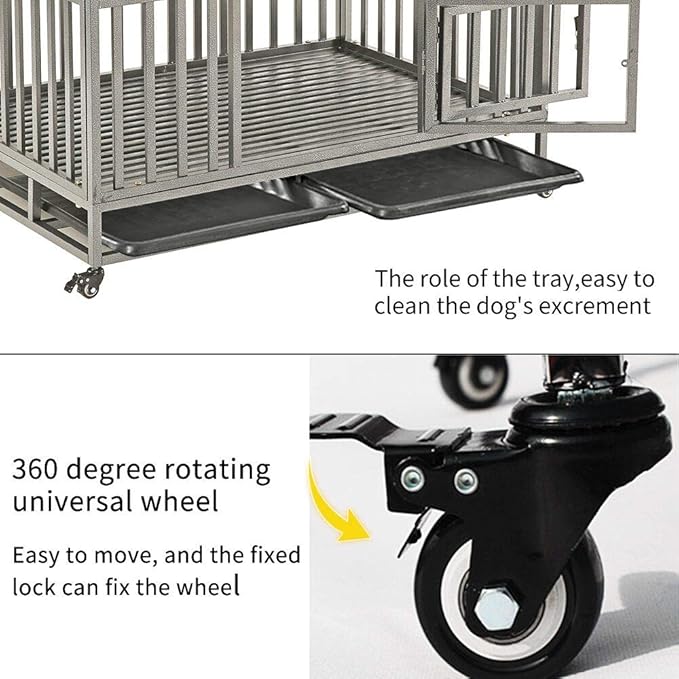 • Easy to Clean and Move: The heavy duty dog kennel has a removable tray for easy cleaning. 360-degree rotatable wheels allow you to move it everywhere and can be locked to prevent unnecessary movement