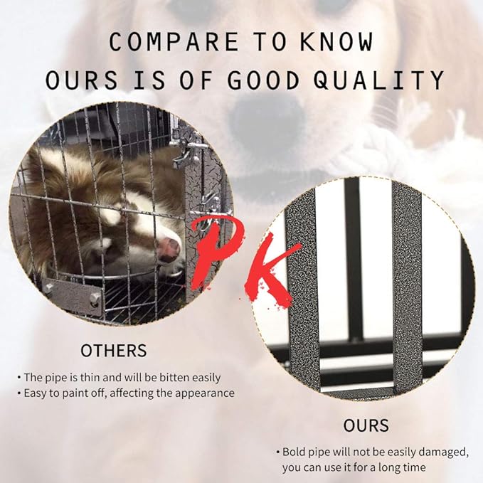 • Rugged and Durable: The steel-constructed large dog crate is built to last. Welding parts are firmly connected, not easy to be bitten by a large dog