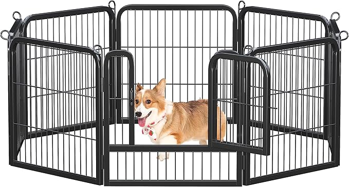 Yaheetech Dog Playpen Outdoor, 24 inch 8 Panels Dog Pen Indoor Heavy Duty Puppy Exercise Pen Metal Pet Fence for RV Camping/Yard/Garden