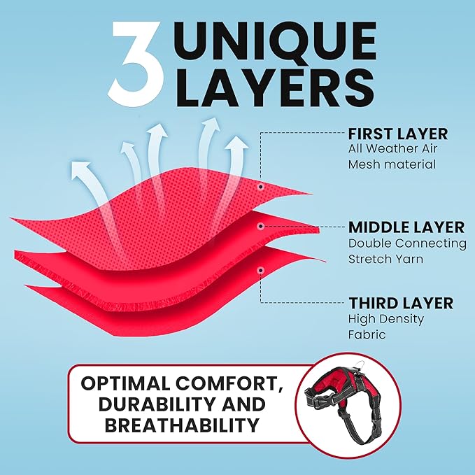 • Our harness is Hassle-free and is easy to put on and take off with its 2 fast-release buckles. Slide the harness over your dog's head, buckle it up, adjust the straps. Grab the top handle for additional control. Lightweight and easy to clean.