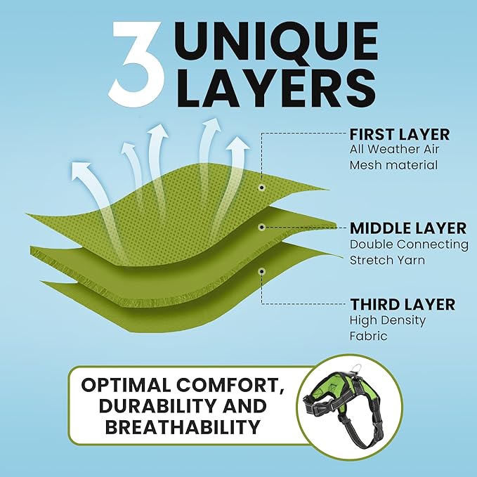 • All Weather Comfortable Mesh- Made with a soft breathable air mesh, this lightweight ultra comfortable pet harness is perfect for walks all year round with your Furry friend