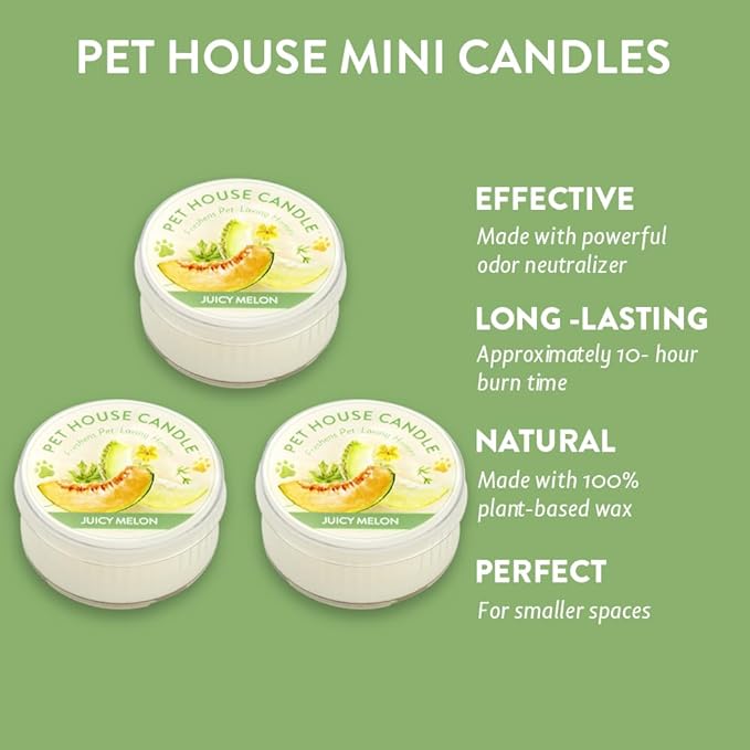 One Fur All Pet House Mini Candles for Pet Odor Made with Natural Soy Wax, Plant Based, Dog and Cat Friendly Scented Candles, Juicy Mellon Pack of 3