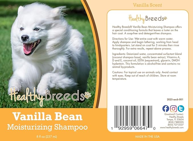 Healthy Breeds American Eskimo Dog Vanilla Bean Moisturizing Shampoo + Conditioner - with Vitamins A, D, E + Coconut Oil - 8 oz