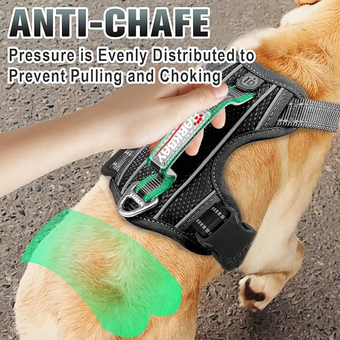 BARKBAY No Pull Dog Harness Large Reflective Dog Harness with Front Clip and Easy Control Handle for Walking Training Running with ID tag Pocket(Black,M)