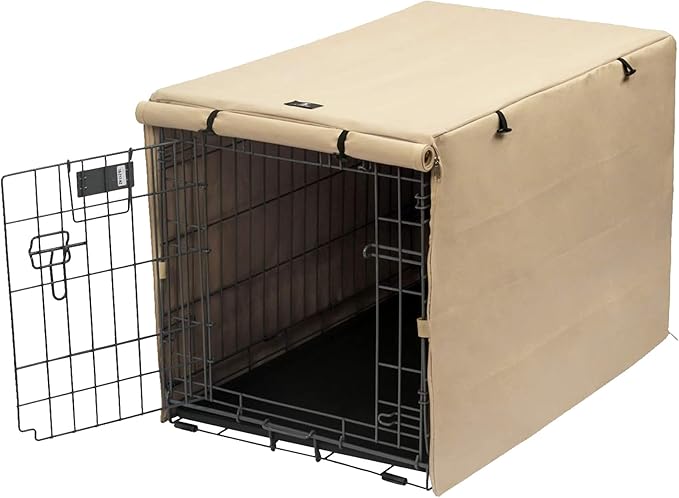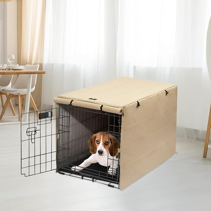 X-ZONE PET Double Door Dog Crate Cover - Polyester Pet Kennel Cover (Fits 24 30 36 42 48 inches Wire Crate) (36Inch, Tan)