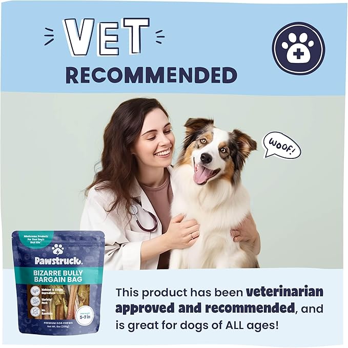 Pawstruck Natural Bizarre Bully Sticks Bargain Bag for Dogs & Puppies - Variety Pack of 5-7" Long Lasting Eco-Conscious Beef Chew Treats - 8 oz. Bag - Packaging May Vary