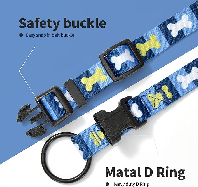 Mile High Life Dog Collar | Nylon Puppy Collars w Cute Patterns | Lightweight Girl Dog Collar | Boy Dog Collar for Small/Medium/Large Dogs (Blue Bone, Medium)