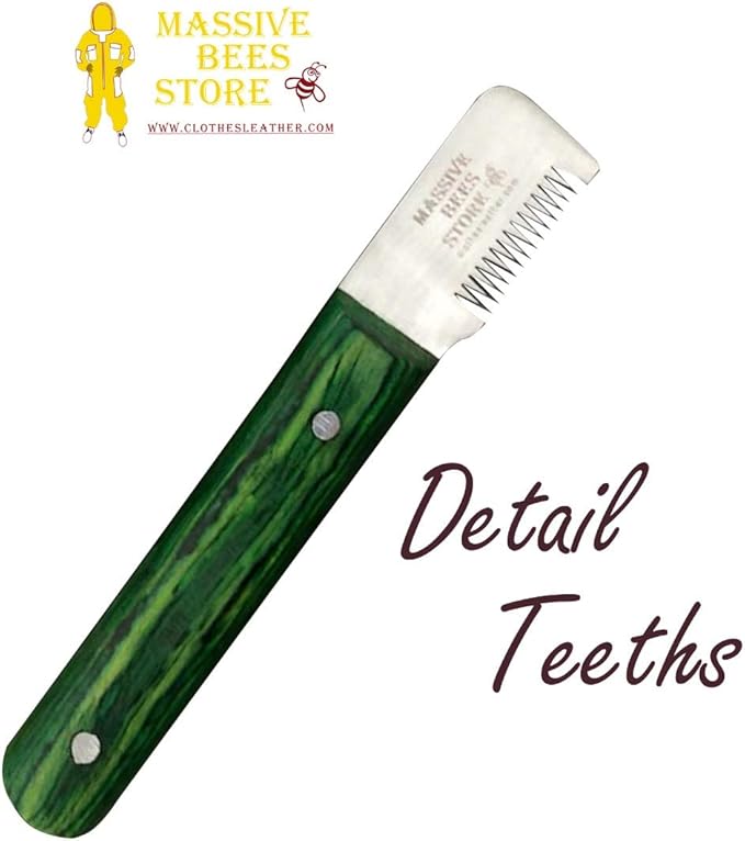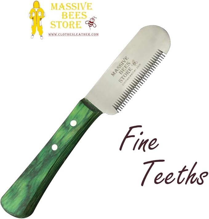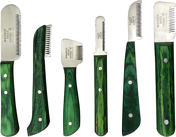 Massive Bee Store® Dog Grooming Coat Stripping Knife Stripper Trimmer Tool Wooded Handle tripping Knives Set of 6 in Stainless Steel non slip tool for grooming dogs (Green)