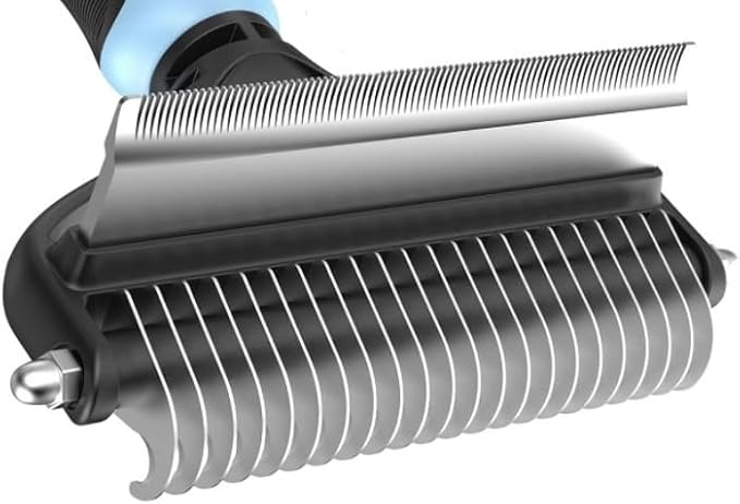 • GENTLE ON YOUR PET’S SKIN: Our deshedding tool features fine, rounded teeth that glide through your pet's fur without irritating their skin. This versatile double coat dog brush for dogs works effectively on all coat types and suitable for both cats and dogs.