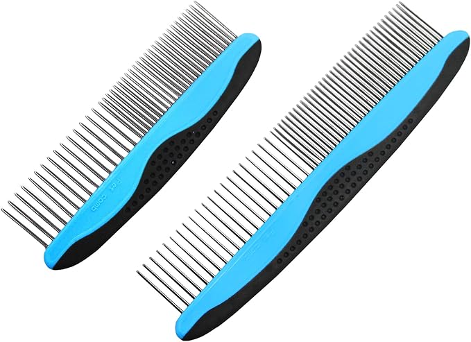 Pets First 2 Pack Dog Comb Small & Large PET Comb for Small & Large Breeds & Areas. Premium Anti-Slip Comfort Grip Ergonomic Handle for Your Dog & Cat with Durable Stainless-Steel