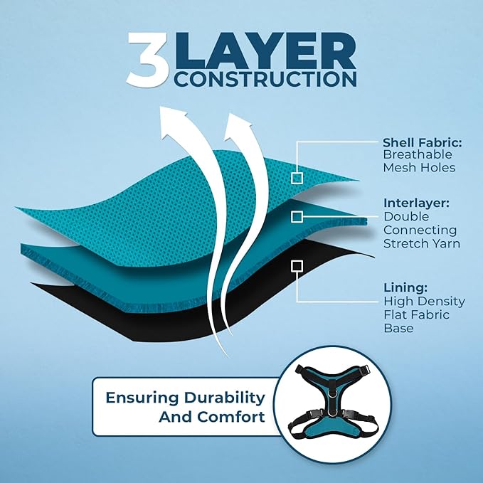 • ALL WEATHER AIR MESH: Made a soft, breathable air mesh, this fully adjustable and lightweight pet harness is perfect for walks all year round