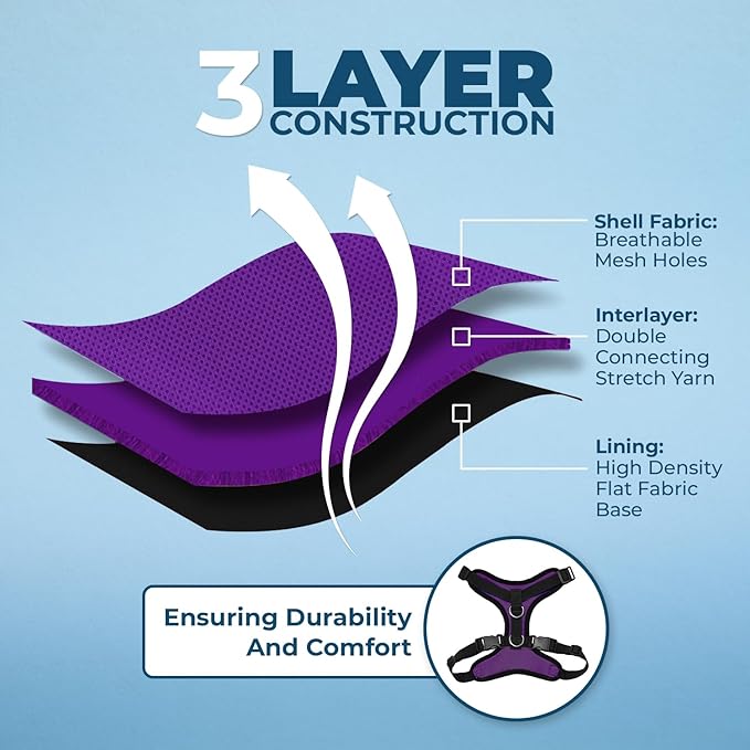 • ALL WEATHER AIR MESH: Made a soft, breathable air mesh, this fully adjustable and lightweight pet harness is perfect for walks all year round