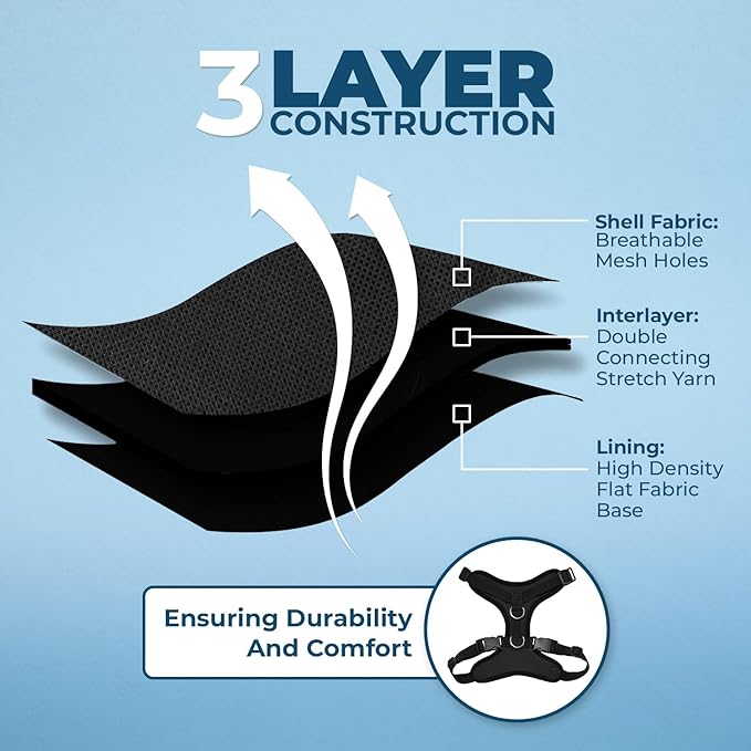 • ALL WEATHER AIR MESH: Made a soft, breathable air mesh, this fully adjustable and lightweight pet harness is perfect for walks all year round
