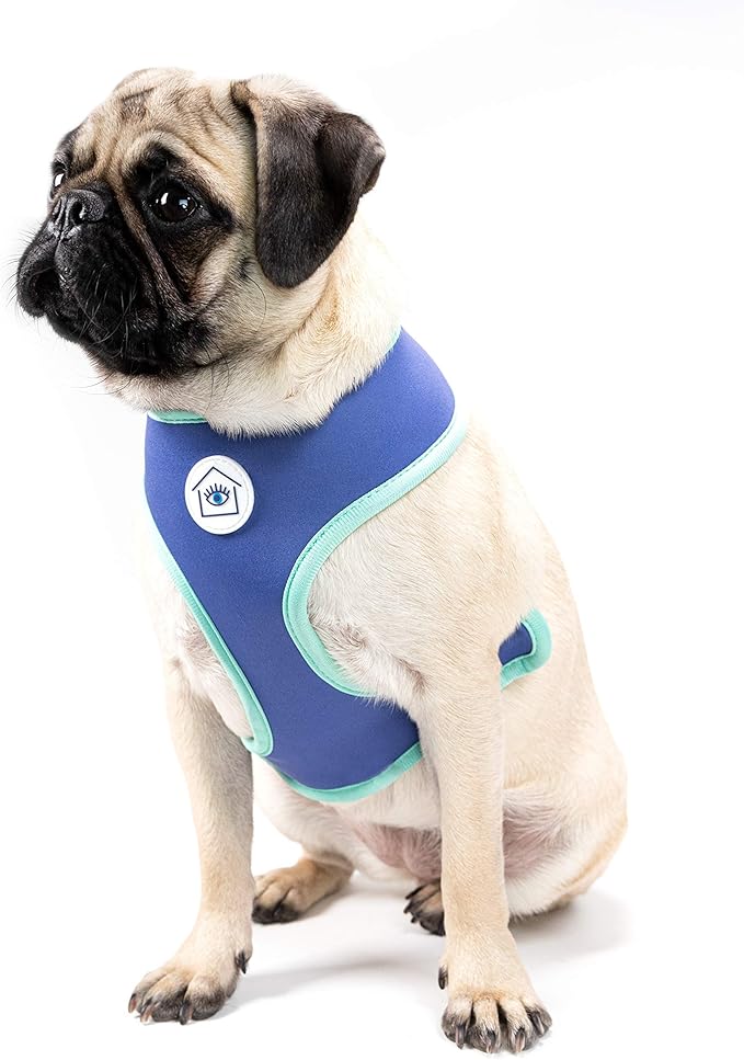 • Reversible harness featuring our stylishly speckled Terrazzo motif on one side and solid blue with reverse accent on the other