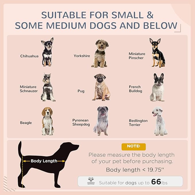 • Wicker Dog Bed Information: Overall Dimensions: 38.5" L x 27.25" W x 27.5" H. Bed Size: 31.5" L x 26.5" W. Weight Capacity: 110 lbs. Suitable for small to medium-sized dogs, such as Bichon Frise, Boston Terrier, Pyrenean Sheepdog, Bedlington Terrier.