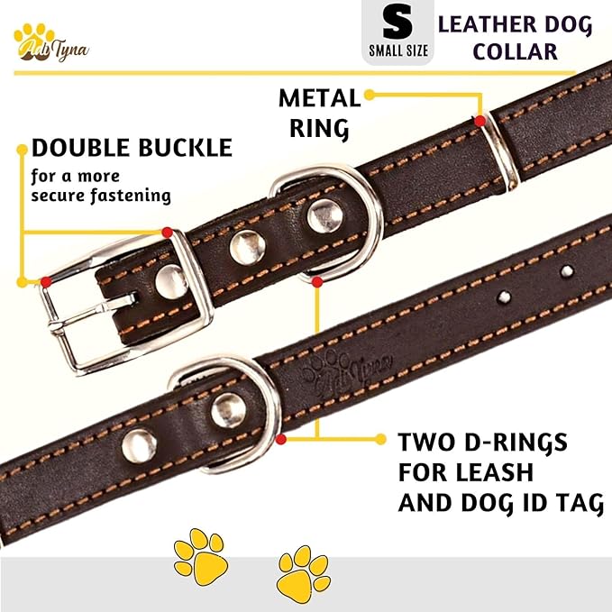 • TOP-RATED LEATHER DOG COLLAR - comfortable and featuring secure fastening with double buckle, two d-rings, and high-quality leather, the Adityna leather collar is a great option for all dogs including the ones with sensitive skin. Get only premium products for your beloved friend.