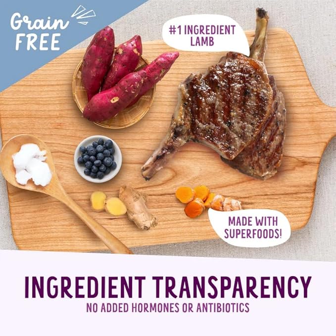 • Wholesome Ingredients: Made with real fruits, veggies, and superfoods like turmeric, coconut oil, and apple cider vinegar. Flavors include Peanut Butter & Banana, Lamb & Blueberry, Chicken & Pomegranate, and Salmon & Kale.