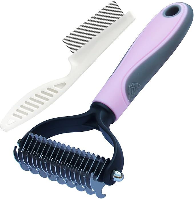Pet Grooming Tool: Double Sided Undercoat Rake Comb for Deshedding and Dematting Dogs and Cats, Flea Comb Set (Pink/16 tooth)