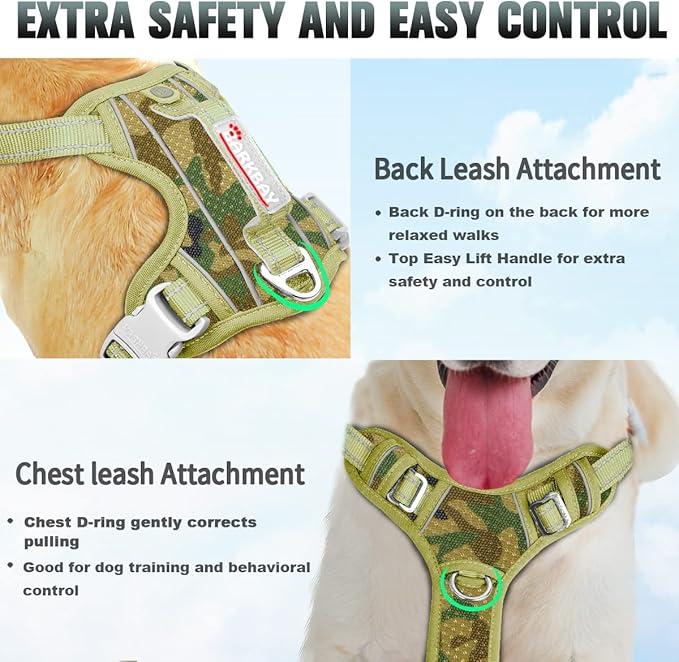 BARKBAY No Pull Dog Harness Large Reflective Dog Harness with Front Clip and Easy Control Handle for Walking Training Running with ID tag Pocket(Camo,S)