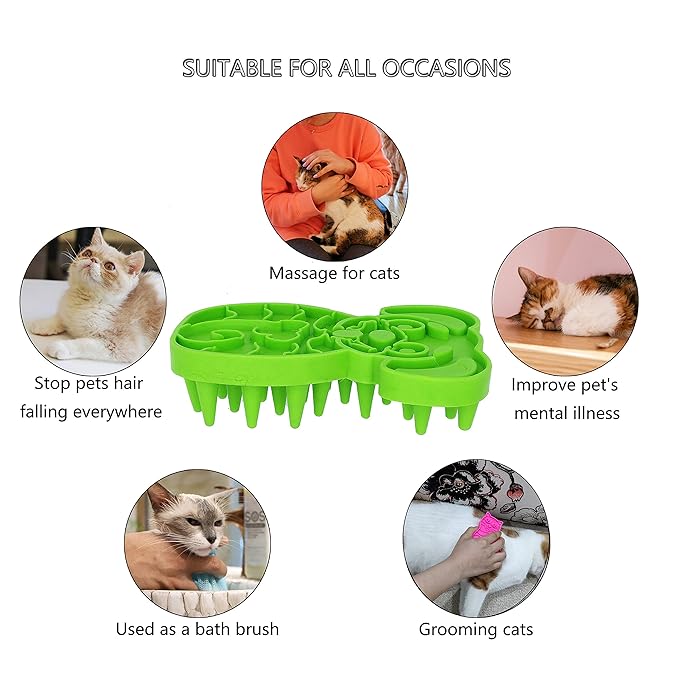 • Soft & Flexible - Durable silicone material that can be flexed freely to suit different body parts of various cats or dogs; Soft bumps will not make them fell any pains. Which effectively loose fur from your pet's coat while your pet is being massaged or bathed. WORKS GREAT ON CAT AND DOG!