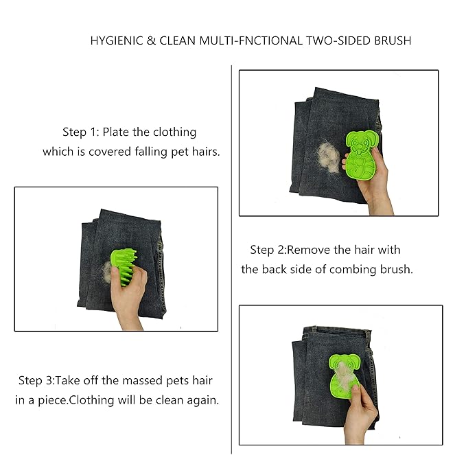 • Hygienic & Clean Multi-functional Two-sided Brush - How to use this brush? Use DRY or WET.Whether it's grooming or cleaning your cat or dog. Back side of brush removes fur from clothing, furniture and all the places.You can simply flush the brush with water after it's uesd so it’s ready for the next time use.