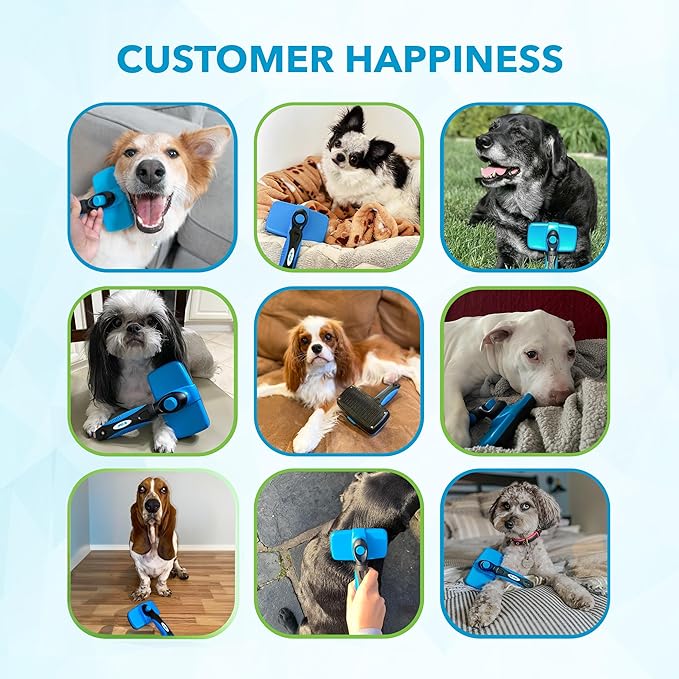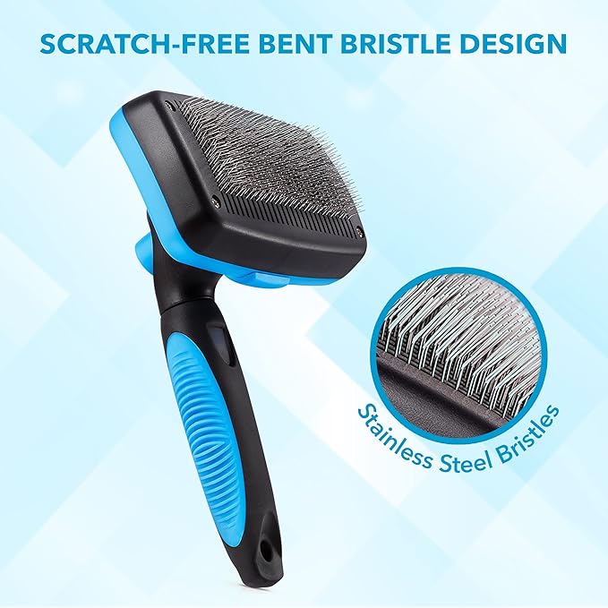 • Clean With One Click - No more dealing with a deshedder brush for dogs that is an absolute pain to clean. After you’re done brushing, just press the button on our dog slicker brush to retract the bristles and watch the fur slide right off. This means major time savings and no bristle damage.