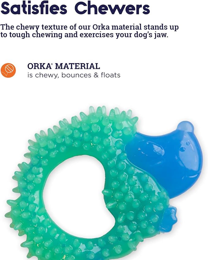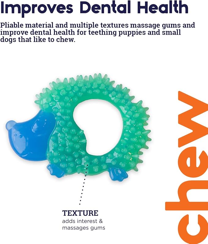 • Textures of this hedgehog chew toy help massage gums and add interest to keep your dog busy
