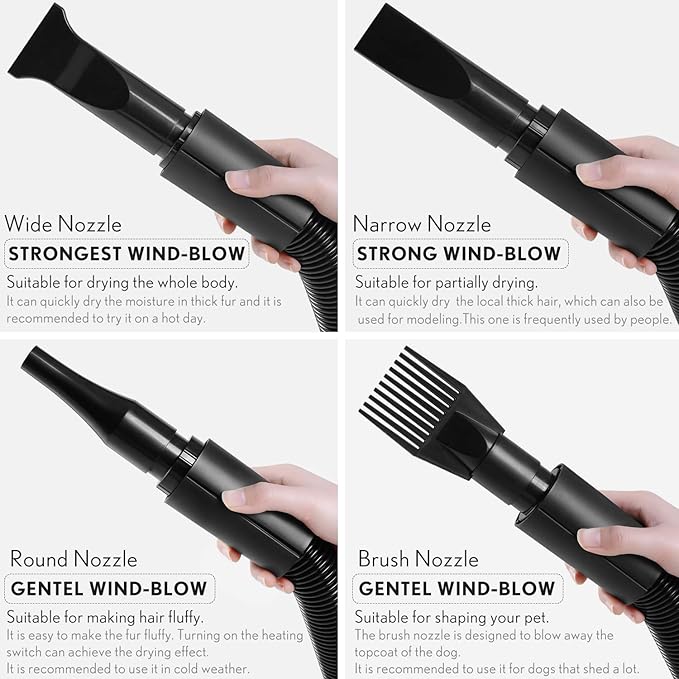 • 1 x Brush Nozzle, which makes gentle wind-blow, it is recommended to brush, groom and shape your pets