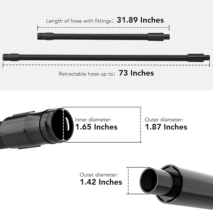 • 1 x Long Spring Hose: Up to 73 inches. 1 x Clip
