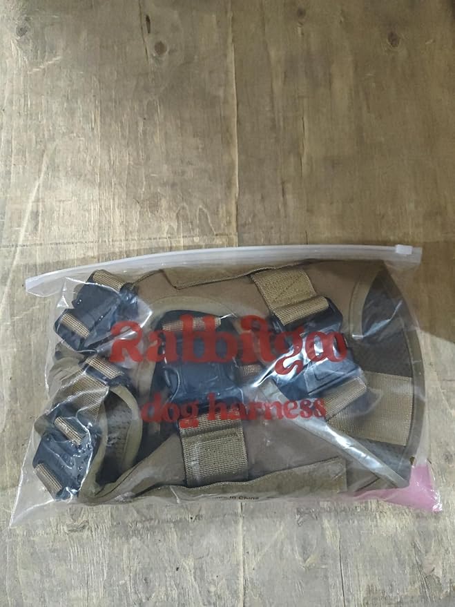 rabbitgoo Tactical Dog Harness for Large Dogs, Heavy Duty Dog Harness with Handle, No-Pull Service Dog Vest Large Breed, Adjustable Military Dog Vest Harness for Training Hunting Walking, Brown, XL