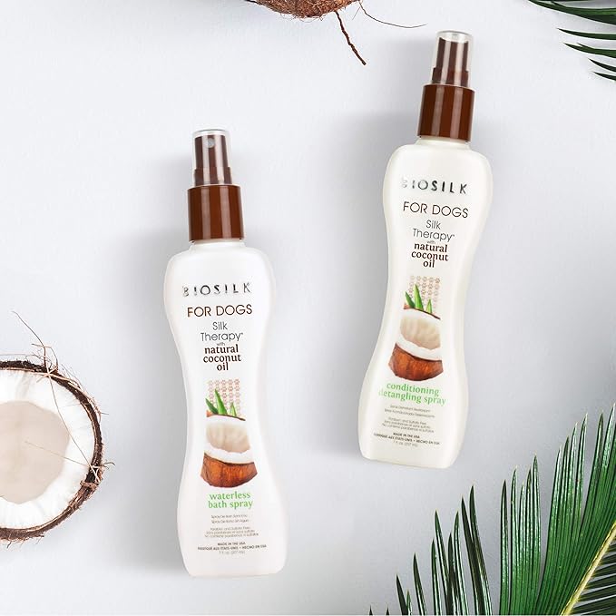 BioSilk for Dogs Silk Therapy Shampoo with Organic Coconut Oil | Coconut Dog Shampoo Waterless Shampoo | Dry Dog Shampoo from Silk Therapy for Fresh Dog Coats,Beige