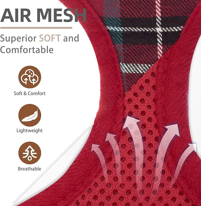 • DIFFERENT DESIGN: The harness is adopted with a plaid pattern which is designed by our internal brand team, so it's unique and very different from other normal harnesses. This plaid pattern looks both classic and stylish and is never out of date. It's great for everyday walking or going to a holiday party. It makes your furry friend look so lively and cute