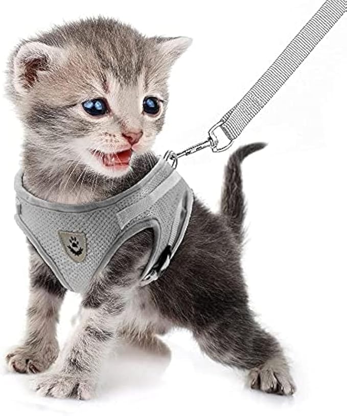 FEimaX Dog Harness and Leash Set for Walking, Soft Mesh Adjustable Easy Control Lightweight Cat Vest Harnesses with Reflective Strips, Escape Proof Small Dogs Cats Vests (Grey, X-Small)