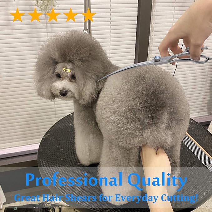• This curved scissors for dog grooming, is lightweight and exceptionally comfortable, and suitable for all dog groomers, whether a beginner or experienced