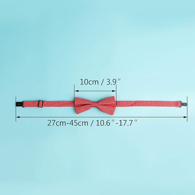 • ADJUSTABLE -- dog bowties fit pet neck size approx 9.6'' -16.5‘’; A 2-finger gap between dog neck and bowtie collar is recommended, for tie collar fabric is not stretchable.