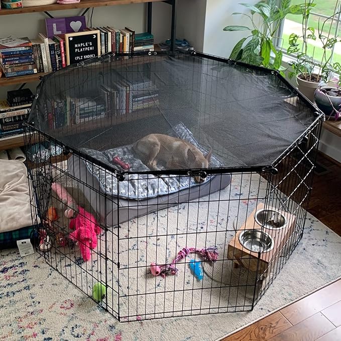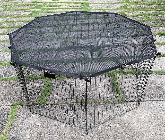 Universal Octagonal Dog Playpen Top Cover, Provide Shade and Security for Pets Outdoor and Indoor, Fits All 24" Wide 8 Panel Pet Exercise Pen (8x24 W Cover, Mesh)