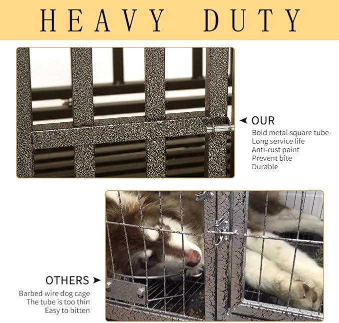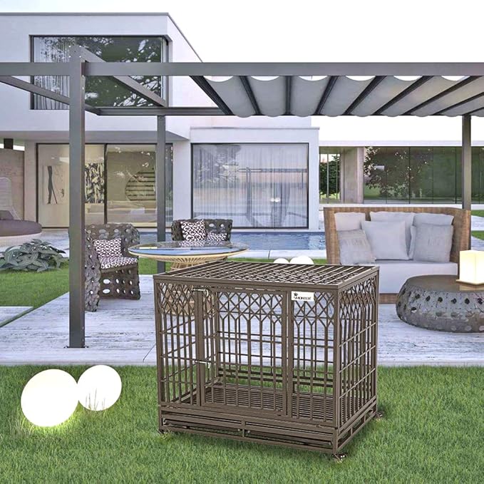 • 【Size and Aftersales】 42"L X 31"W X 37"H, Brown. The height of the dog cage with wheels is 37 inches, and the internal height is 30.7 inches. Suitable for most large dogs, perfect for indoor and outdoor use. If any quality problem within 3 years, please contact us. We will provide with the most satisfactory solution!