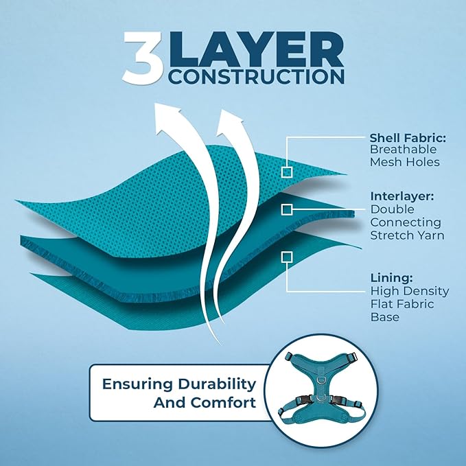 • ALL WEATHER AIR MESH: Made a soft, breathable air mesh, this fully adjustable and lightweight pet harness is perfect for walks all year round