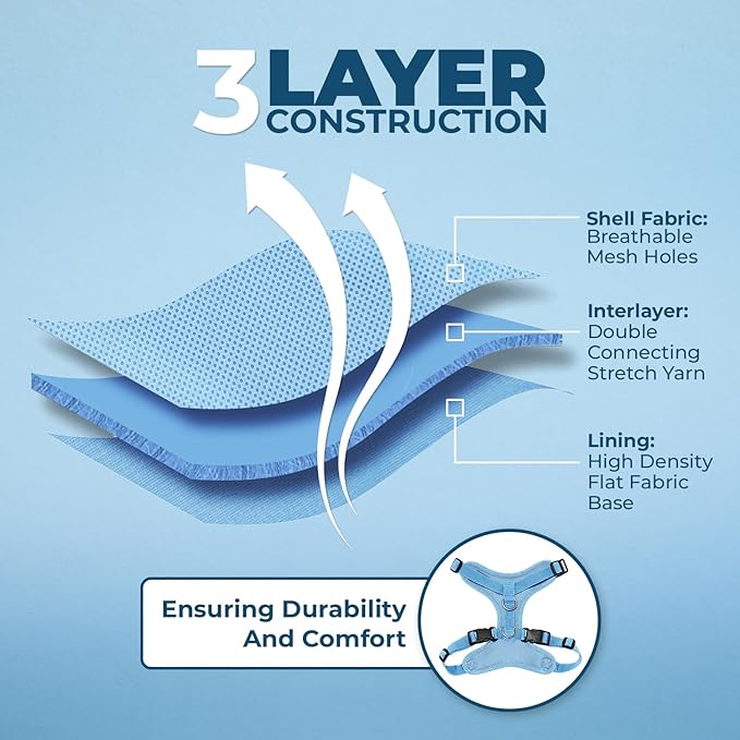 • ALL WEATHER AIR MESH: Made a soft, breathable air mesh, this fully adjustable and lightweight pet harness is perfect for walks all year round