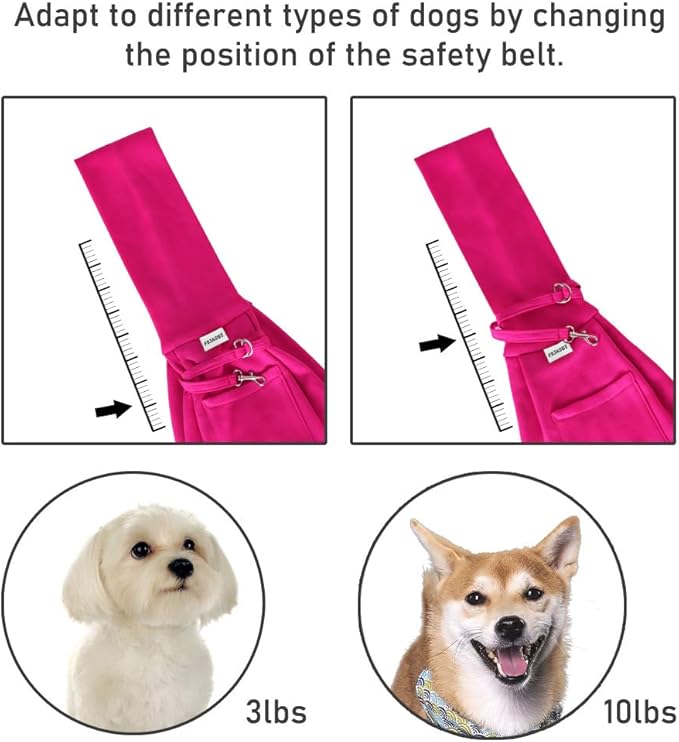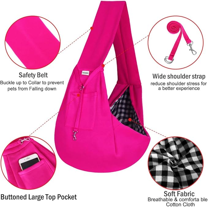 FDJASGY Small Pet Sling Carrier-Hands Free Reversible Pet Papoose Bag Tote Bag with a Pocket Safety Belt Dog Cat for Outdoor Travel Rose Red