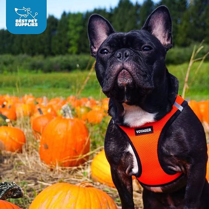 Voyager Step-in Air Dog Harness - All Weather Mesh, Reflective, No Pull Harness for Small, Medium Dogs, Cats - Secure with Hook & Loop Fastener, Buckle, Double D-Rings - Orange/Black Trim, XXXS