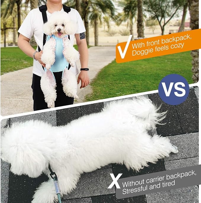 • Two Ways of Wearing: A hands-free pet carrier can be worn on your front side or your backside if you like, it keeps you closer and increases pet's sense of security when you carry your cat or dog around. Meanwhile, the thickened sponge pad helps to relieve the burden of your shoulder.