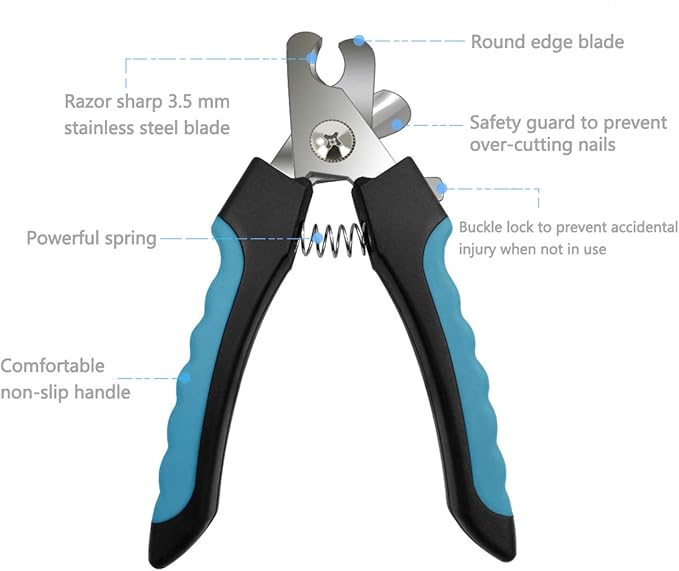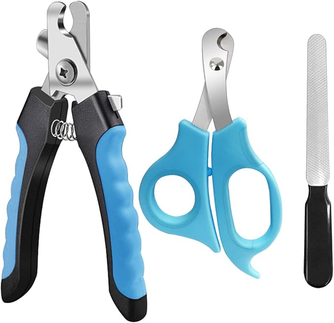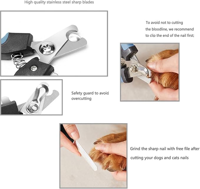 Pet Nail Clippers and Trimmers Set Safety Guard to Avoid Over Cutting Razor Sharp Blades Grooming Tool for All Small Large Dog Cat (Blue/Black)