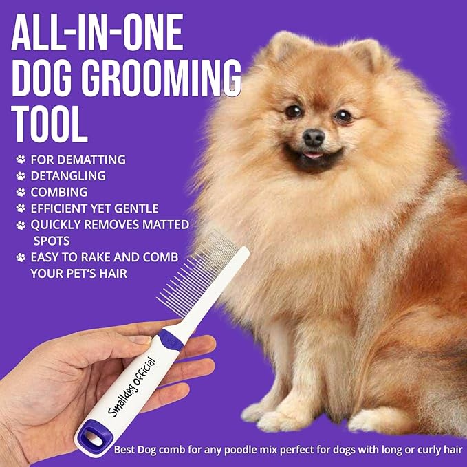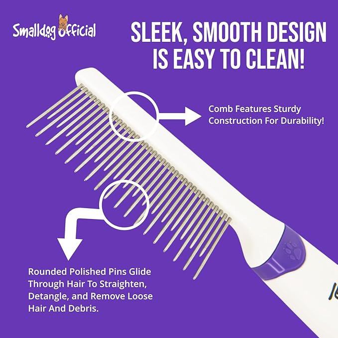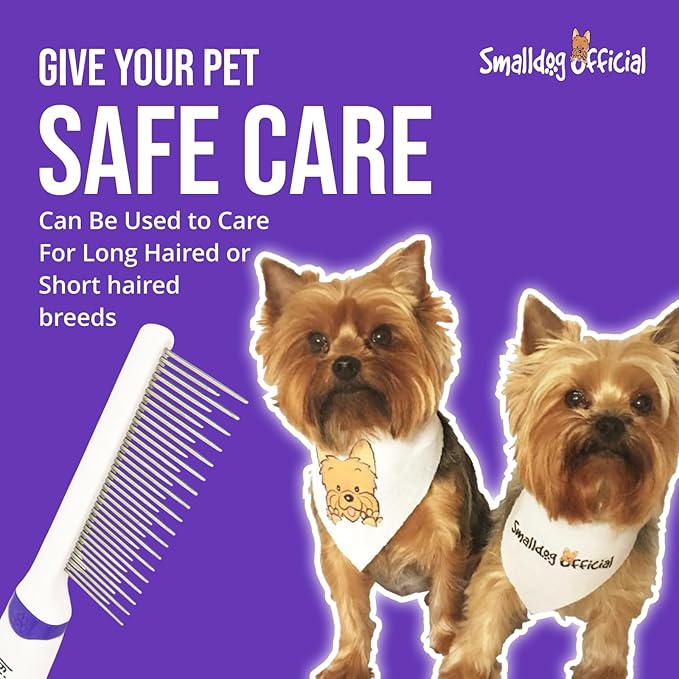 Tangles Be Gone Steel Metal Dog Comb for Brushing Small and Toy Breed Dogs, to Groom and Remove Debris and Mats, from Fur and Coat