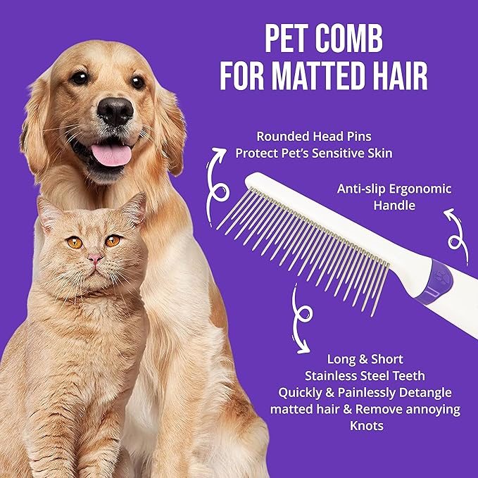 • Tangles Be Gone Fine Tooth Comb: Helps eliminate tangles, knots and mats on fur and undercoat.