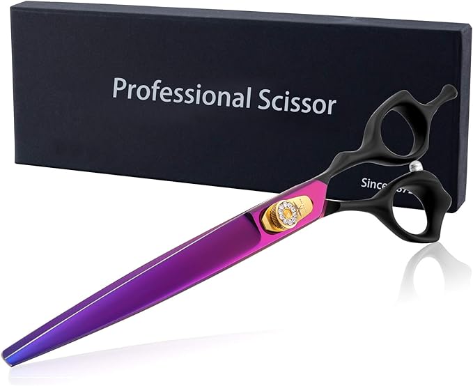 - MULTIFUNCTIONAL - 8 inch scissor with 4 inch cutting blade, the pet scissors are ideal for pet hospital, pet salon, and family to use on dogs, cats and so on. You can become a professional pet beautician at home, saving time and money. The dog grooming shear is also definitely the perfect gift for relatives and friends, especially for dog or cat lovers.
