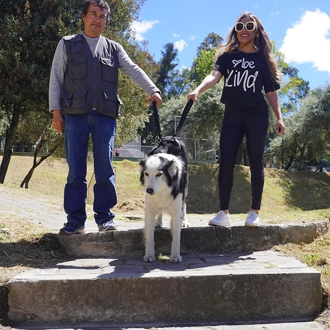 • The adjustable length straps accommodate humans of all sizes. No more bending over and straining your back to help your dog!